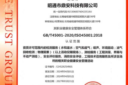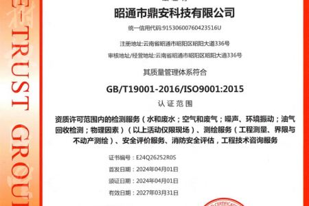 2003年11月10日,昭通市鼎安科技有限公司成立,初始主要從事第三方安全工程技術(shù)服務(wù),經(jīng)多年運(yùn)營,發(fā)展為多專業(yè)綜合科技平臺,為社會提供多種專業(yè)技術(shù)服務(wù)工作。 現(xiàn)公司注冊資金為1200萬元,公司法定代表人:毛衛(wèi)旭。公司主要業(yè)務(wù):安全評價、安全標(biāo)準(zhǔn)化評審、安全工程技術(shù)服務(wù);環(huán)境監(jiān)測、職業(yè)衛(wèi)生檢測、檢驗(yàn);法律訴訟及非訴訟服務(wù);司法鑒定、固定資產(chǎn)投資項目節(jié)能服務(wù);工程咨詢;工程測量測繪;安全教育培訓(xùn)等。是安全生產(chǎn)服務(wù)、安全教育培訓(xùn)機(jī)構(gòu),也是環(huán)境監(jiān)測和職業(yè)衛(wèi)生服務(wù)機(jī)構(gòu),同時也是綜合的檢測檢驗(yàn)、綜合科技平臺服務(wù)機(jī)構(gòu)。多年來為公、檢、法、司、軍、警、海關(guān)、仲裁、安監(jiān)、工礦商貿(mào)企業(yè)、社會團(tuán)體及個人提供多專業(yè)技術(shù)服務(wù)。